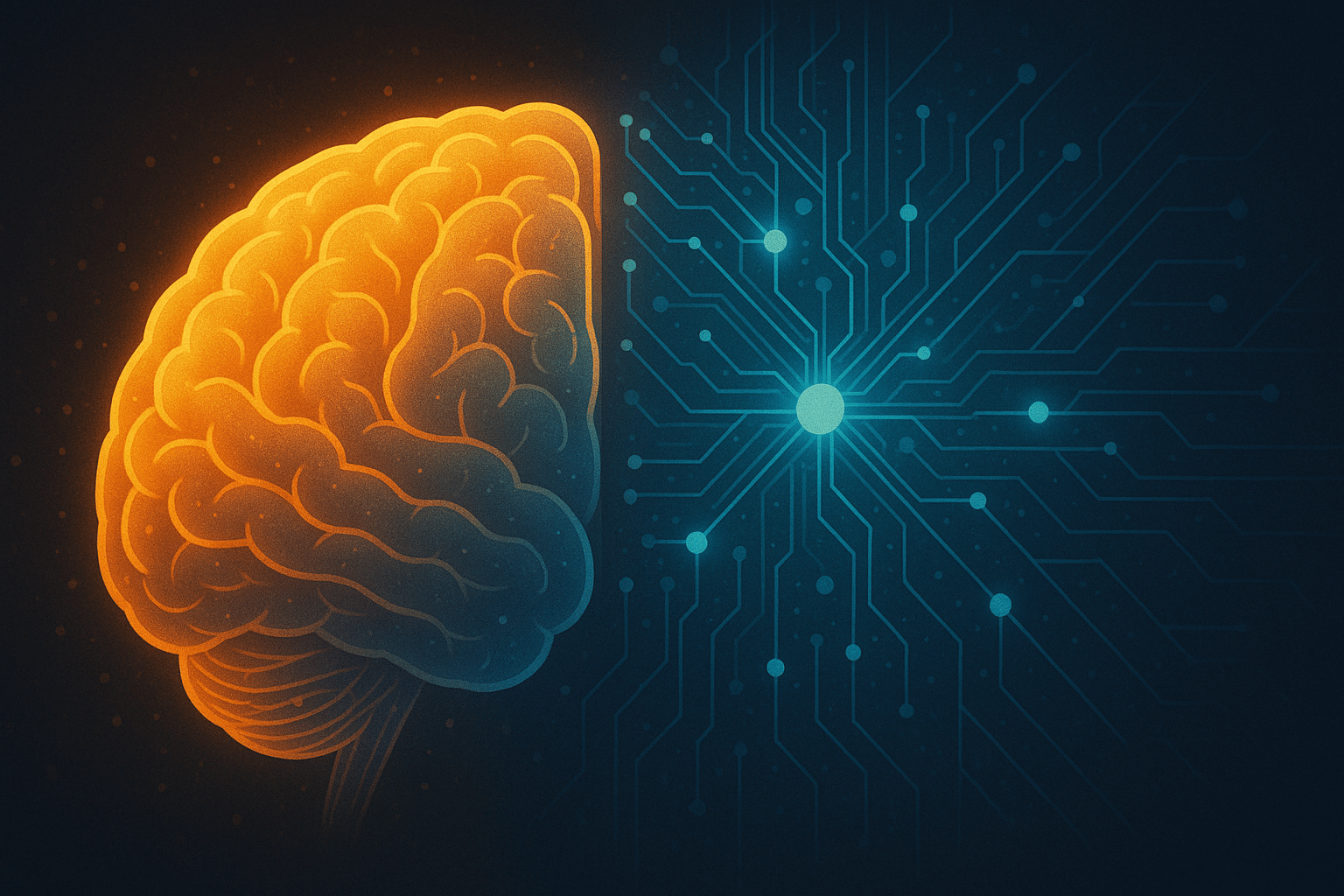 A conceptual image showing the fusion of human intuition and artificial intelligence, representing AI-enhanced decision-making.