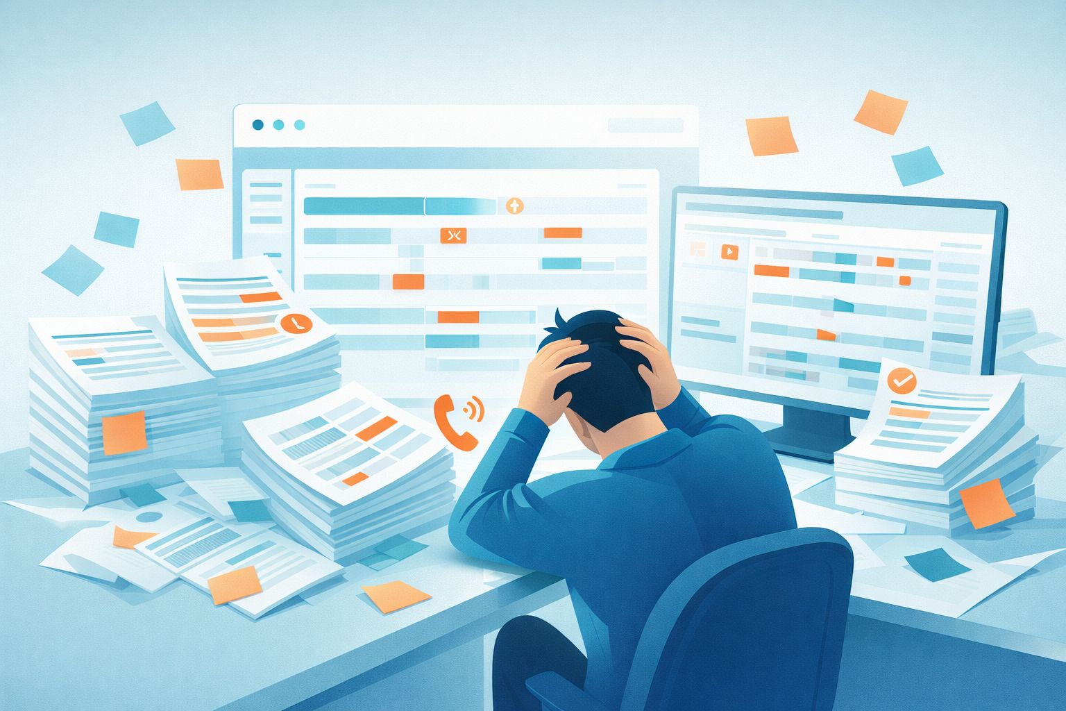 An investor overwhelmed by spreadsheets and sticky notes while tracking real estate leads manually.