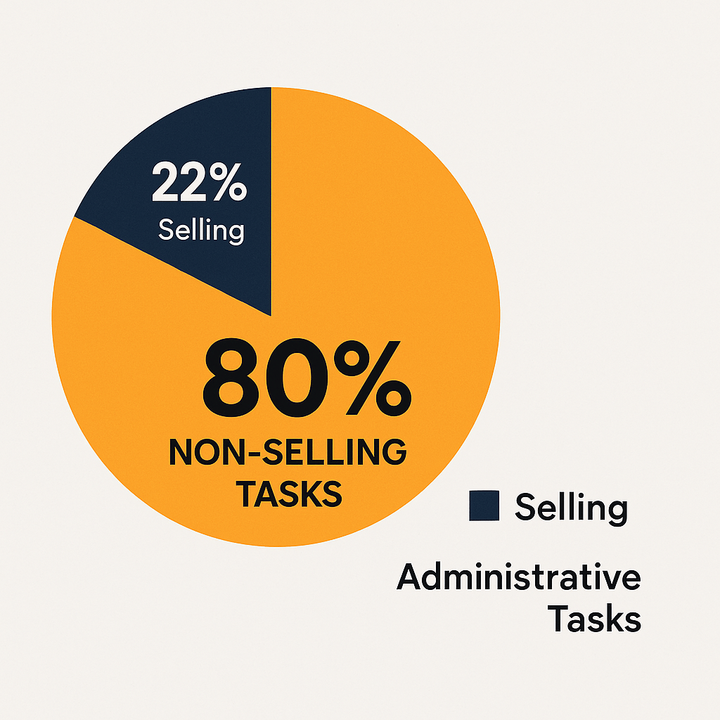 In fact, recent data from HubSpot shows that sales professionals spend just 22% of their day on active selling. The rest is consumed by administrative tasks. That’s nearly 80% of your time spent on work that doesn't close deals.